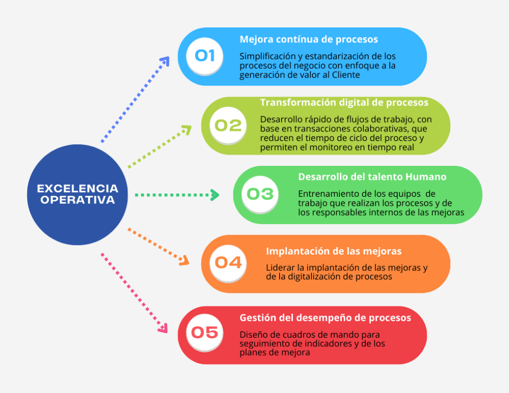 Diseñamos y ponemos en marcha plataformas para la gestión del desempeño de las operaciones, permitiendo evaluar las mejoras del rendimiento organizacional y del equipo humano, así como medir el nivel de excelencia operativa y mejorar su posición competitiva en el mercado.