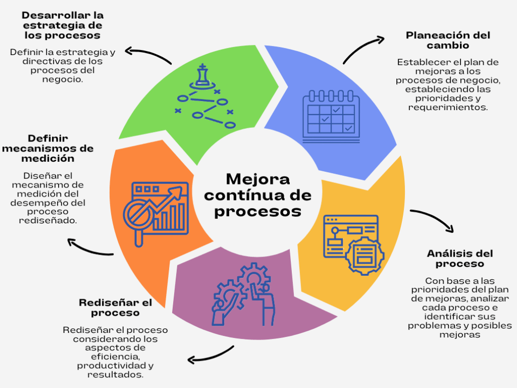 - Medición del desempeño: medir el desempeño de cada proceso con base en indicadores específicos, que impulsar mejoras a Procesos y la Calidad.